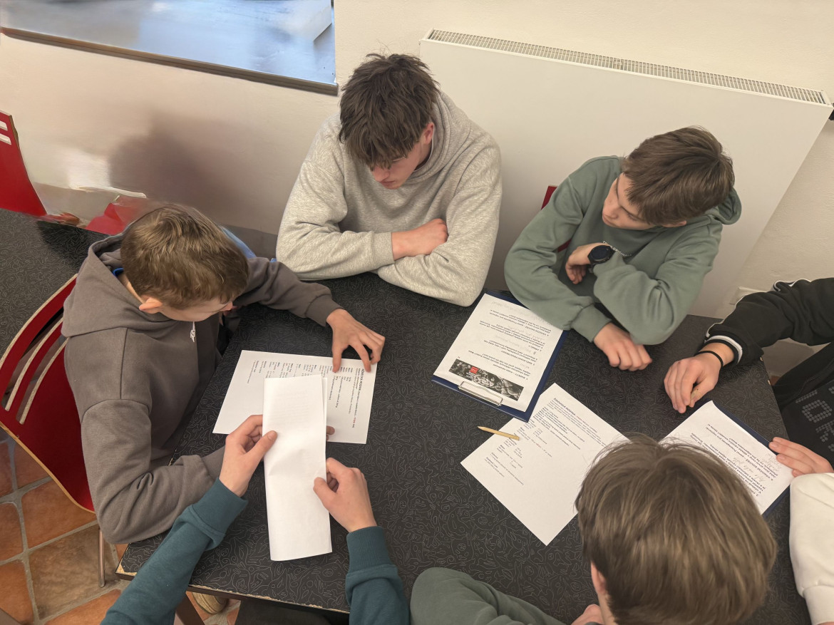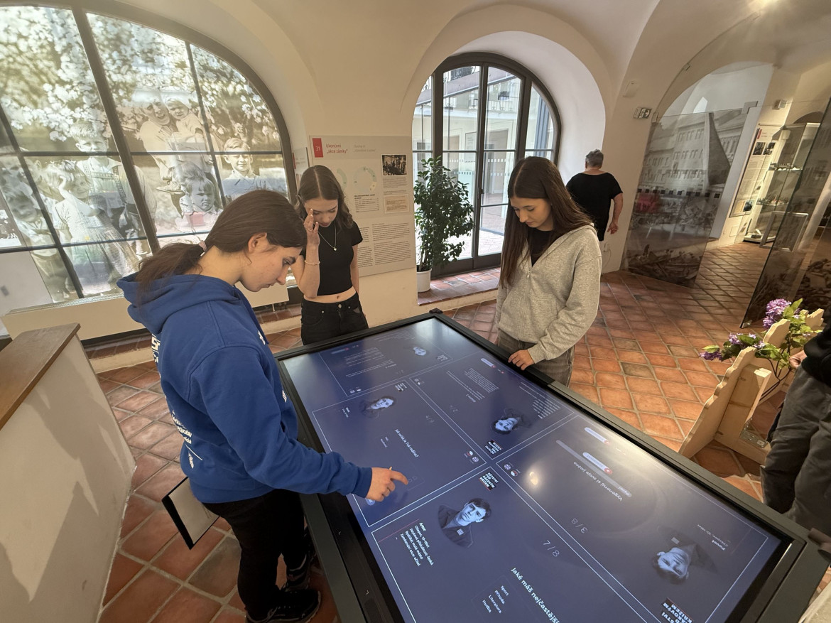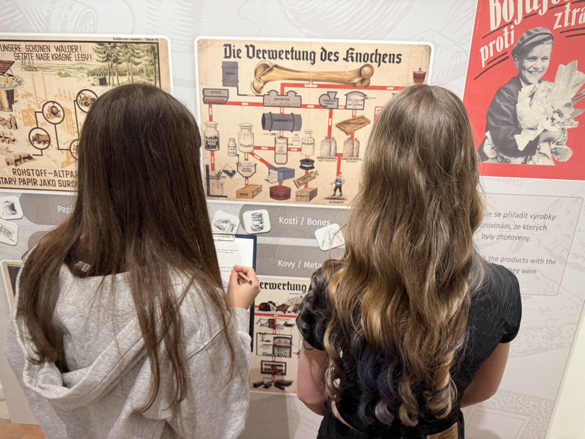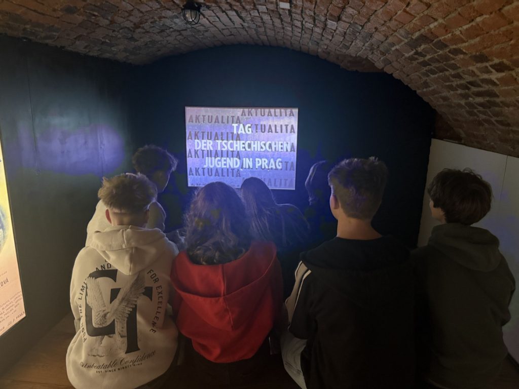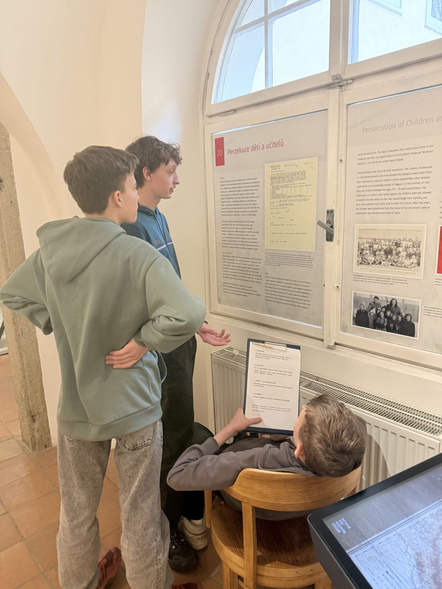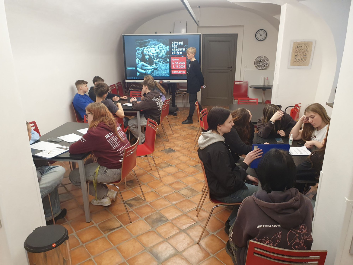 Na programu byla návštěva vzdělávacího programu Dětství pod hákovým křížem, kterou si pro nás připravilo Národní pedagogické muzeum Jana Amose Komenského. Už název napověděl, že to nebude žádná oddechovka. A taky nebyla. Dozvěděli jsme se, jak těžký život měly děti během druhé světové války – nejen ve škole (pokud tam tehdy vůbec mohly), ale i v soukromém životě. Mnozí se pozastavovali nad tím, proč lidé brali propagandu jako součást běžného života – proč na Vánoce pekli perníčky ve tvaru hákových křížů nebo proč si věšeli místo klasických vánočních ozdob na strom ozdoby ve tvaru válečných letadel.