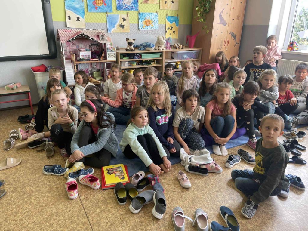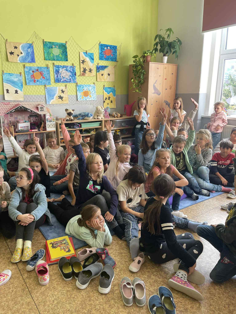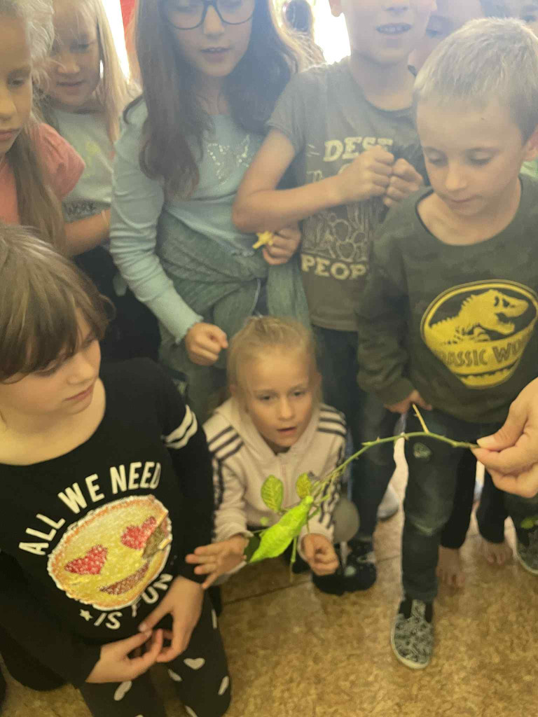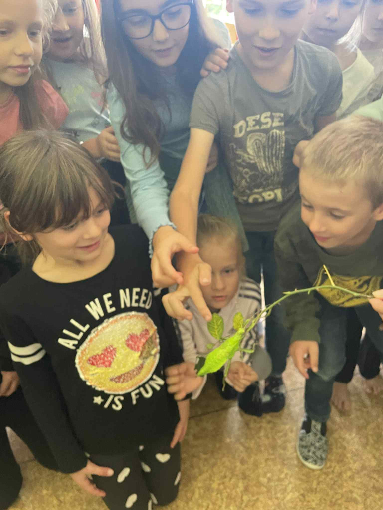 Dnes jsme zavítali na návštěvu ke strašilkám 🦗🪲. Začali jsme krátkým povídáním o jejich životě ve volné přírodě, jejich chovu, následovala ta zajímavější a hlavně napínavější část kouzelnické výuky 🔎 – osobní setkání se strašilkou Emou a jejími kamarádkami. Některé samičky nám předvedly, jak umí krásně syčet, když si dělají pořádek ve své říši 😄, ukázaly své zářivě zelené zbarvení i dlouhé nohy.