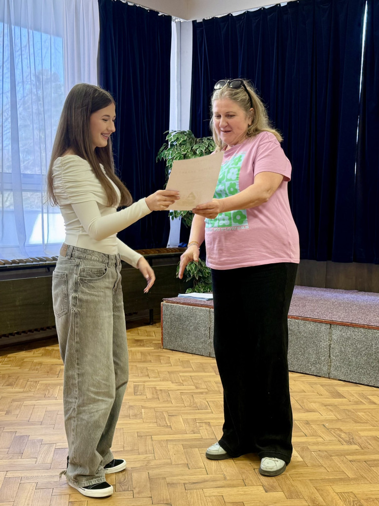 Ve III. kategorii nás statečně reprezentovala Klára Esserová ze 6. A. V konkurenci 29 recitátorů to byla téměř mise nemožná – a i když se tentokrát na stupně vítězů neprobojovala, zaslouží velký potlesk za odvahu a výkon.