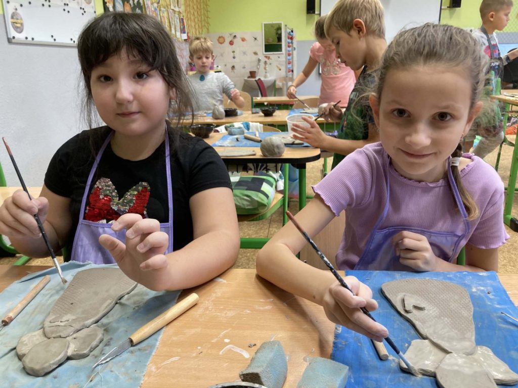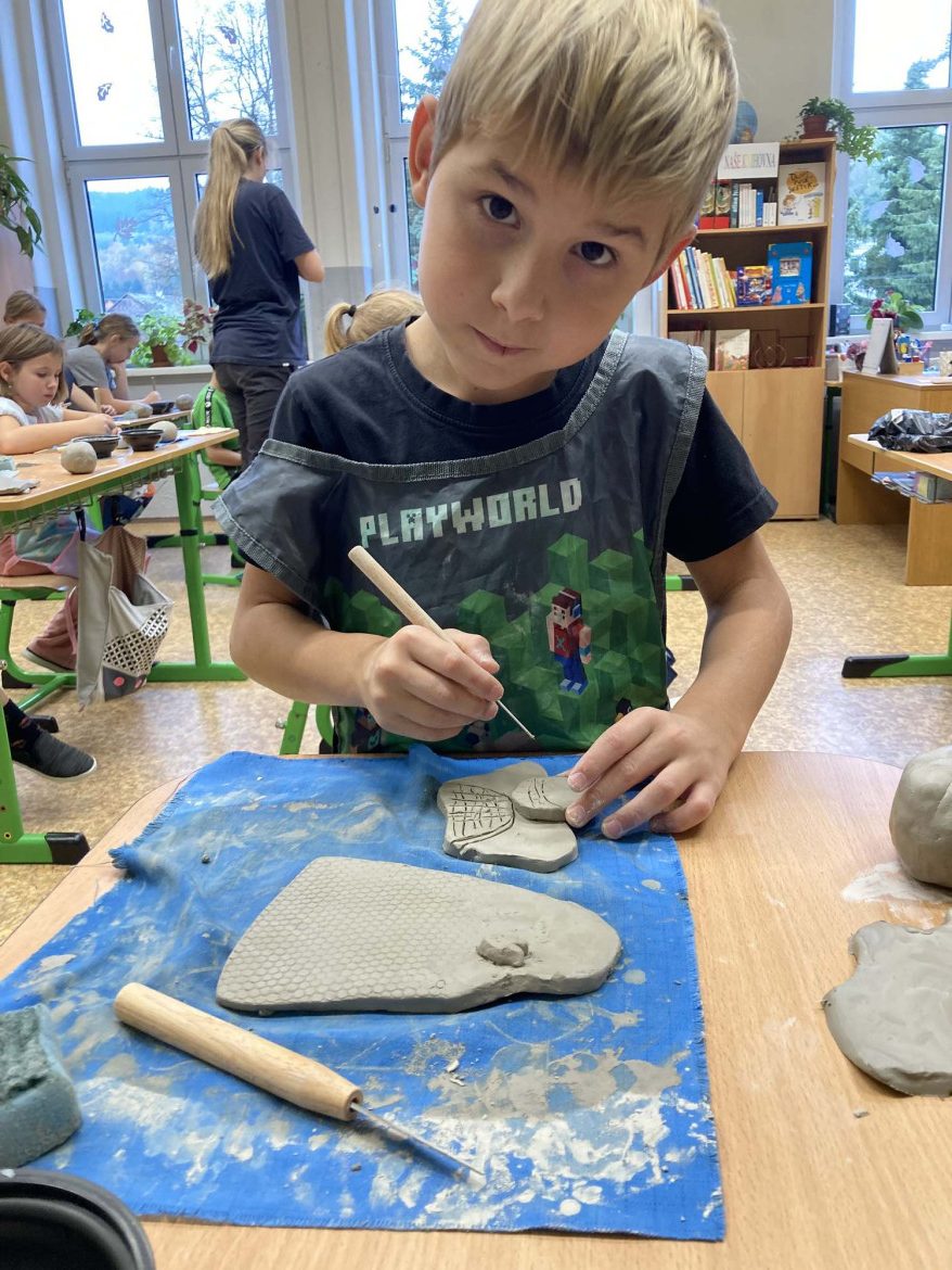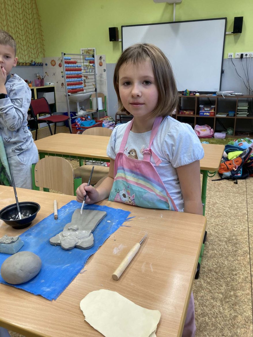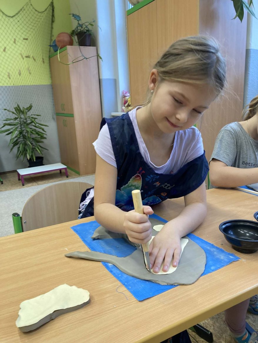 Ve středu 22.10. se děti v naší třídě již naladily na Vánoce. Paní učitelky z Domu dětí pro děti připravily keramickou dílnu – výrobu andílka. Děti se zaujetím pracovaly s keramickou hlínou – hnětly, válely, vykrajovaly a sestavovaly tělo andílka. Tak a teď už jen v Domě dětí vypálit a vánoční dáreček bude hotový.