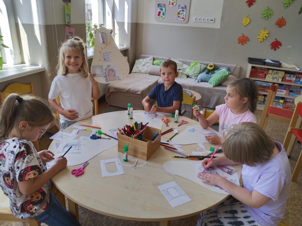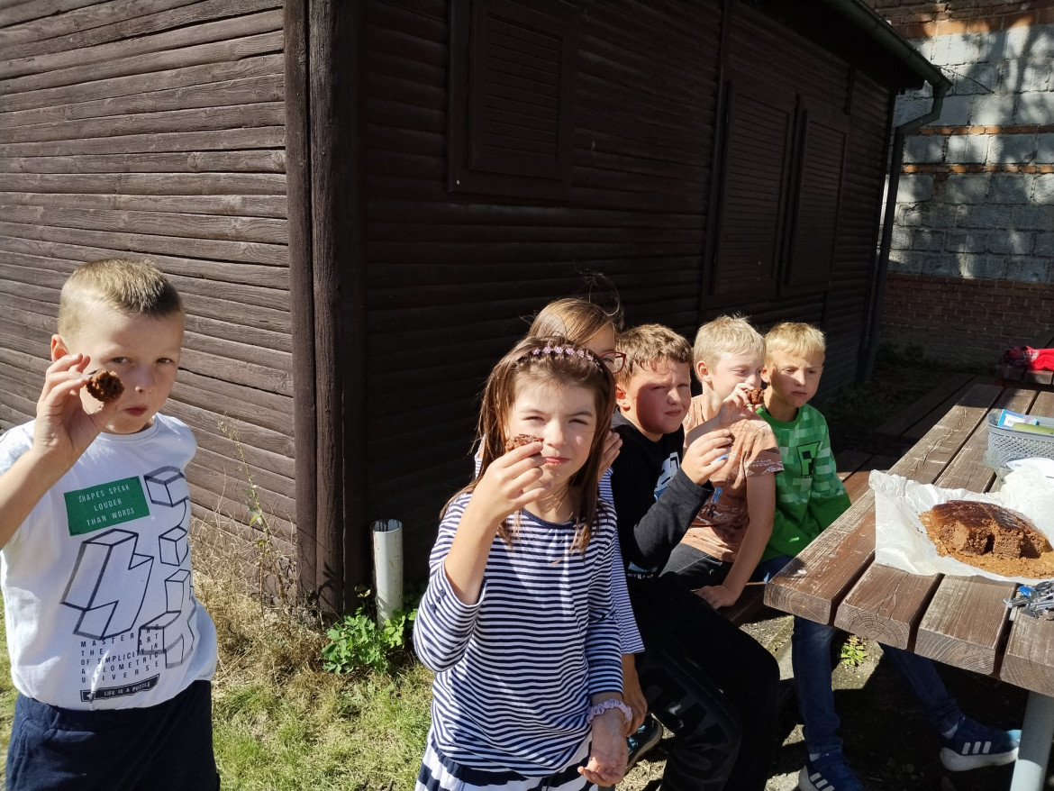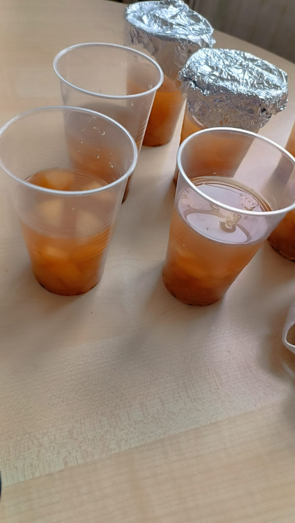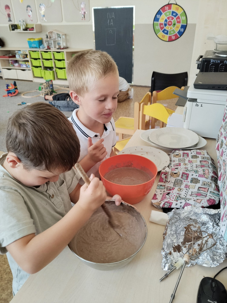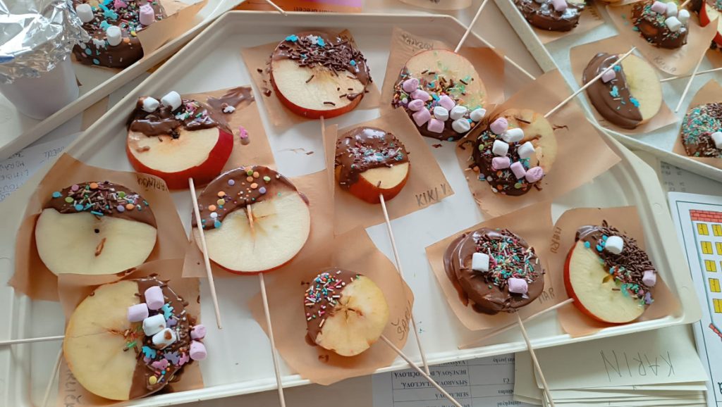 Během měsíce září jsme postupně zpracovali poklady, které se urodily na našich zahradách. Upekli jsme si hruškové muffiny 🧁, perník s hruškami 🍐, uvařili jablečný 🍎kompot a vyrobili jablečná lízátka 🍭. Nejmenší ovoce jsme využili na razítka a každý si „zavařil“ vlastní kompot. Nakonec jsme ubytovali všechna zvířátka ze sadu do hruškových obydlí. ❤️