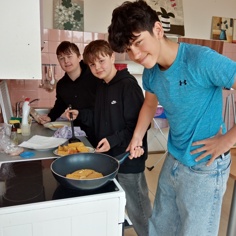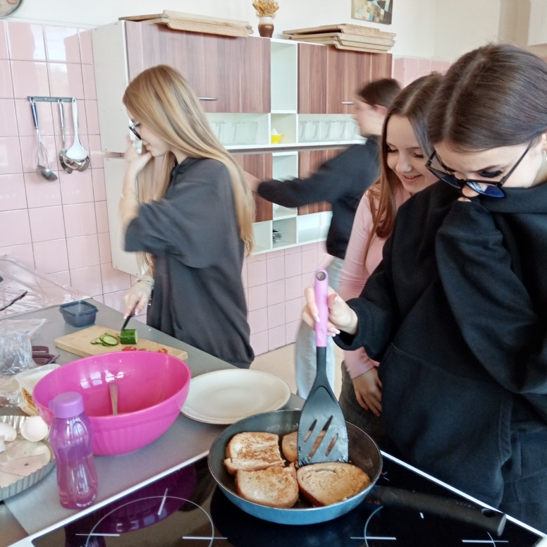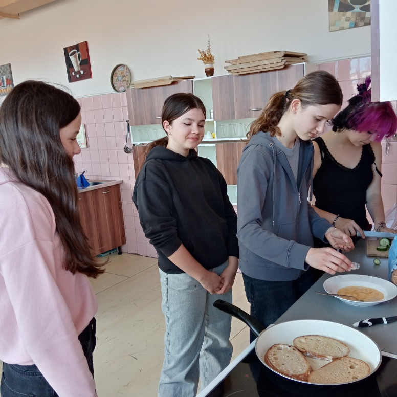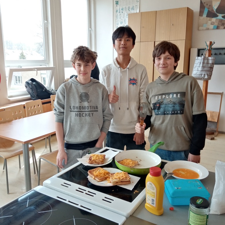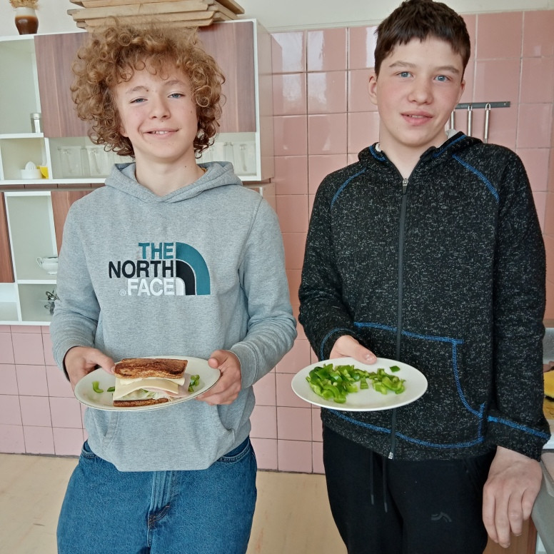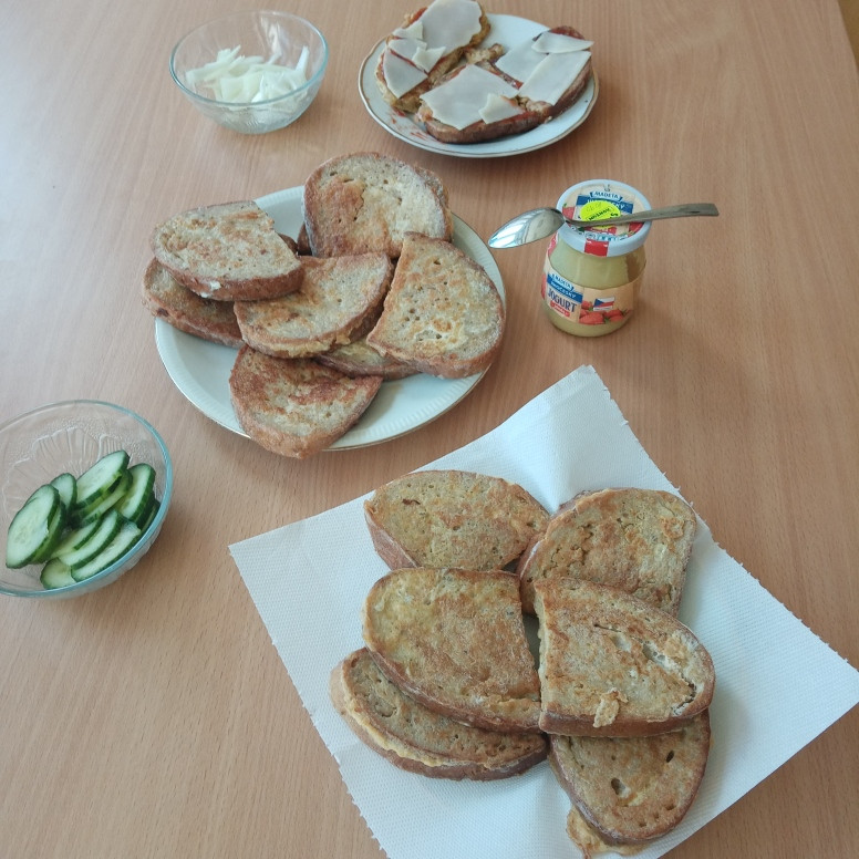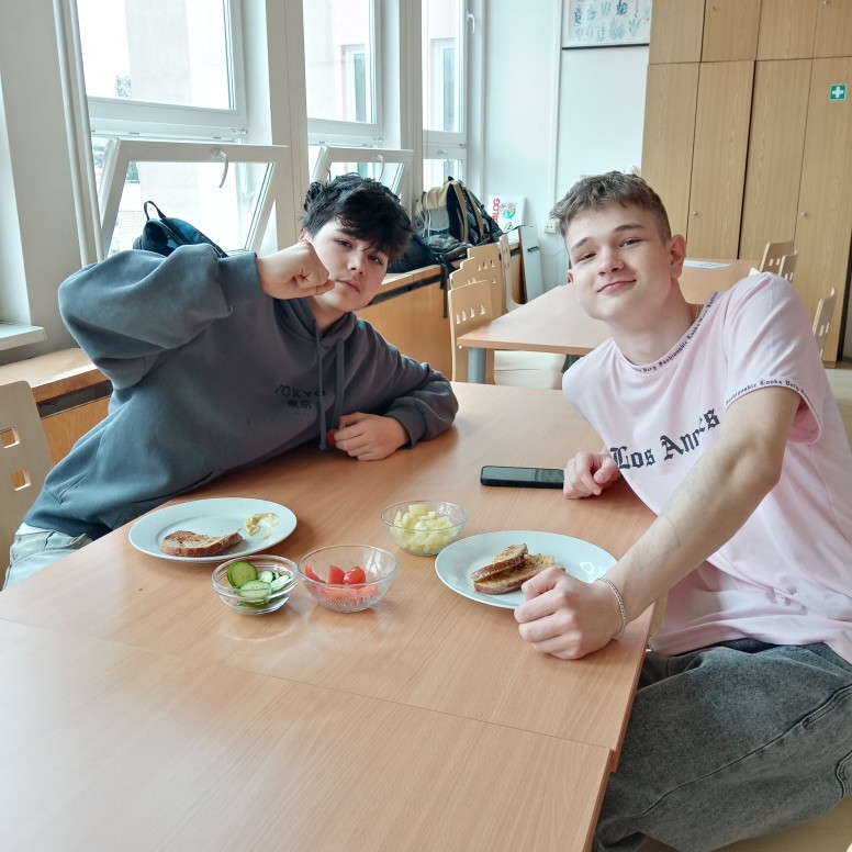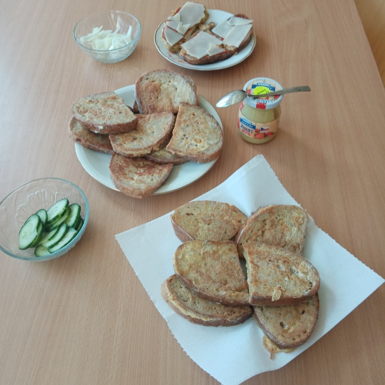 Opět se hlásí osmé ročníky se svými pokrmy, zhotovené při hodině pracovních činností. Tentokráte jsme volily variantu rychlé svačinky. Stačil starší chléb, vajíčko a nakonec nějaká sezónní zeleninka. Musíme se přiznat, že ve smažení máme co vylepšovat, ale znáte to, co se říká: „Co si uvaříš, to si sníš“. A vše se snědlo 🙂