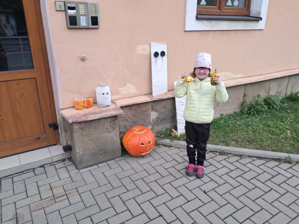 Během podzimních prázdnin jsme u nejmenších dětí uspořádali soutěž o nejkrásnější úsměv s naší halloweenskou výzdobou před školou. Ze všech došlých fotografií , vybrala porota právě tyto. Výhercům gratulujeme!