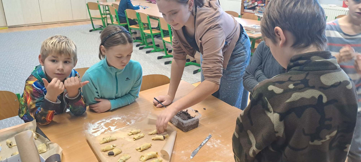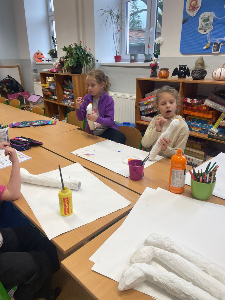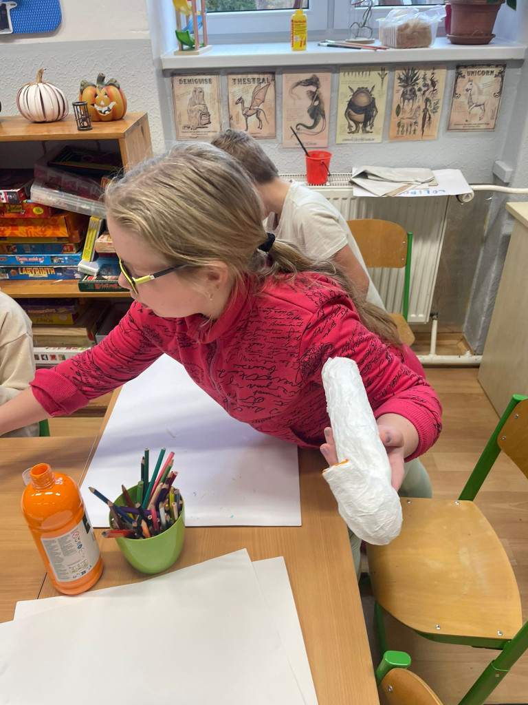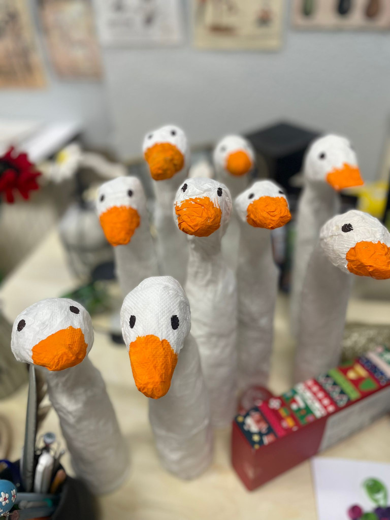 Společné povídání o sv. Martinovi jsme zakončili kvízem o body do kolejní soutěže, prvenství patřilo Nebelvírským🥳. Jedním ze symbolů sv. Martina je husa….my jsme si jich vyrobili hned celé hejno🪿. Nechyběla ani sladká tečka v podobě svatomartinských rohlíčků s makovou náplní.