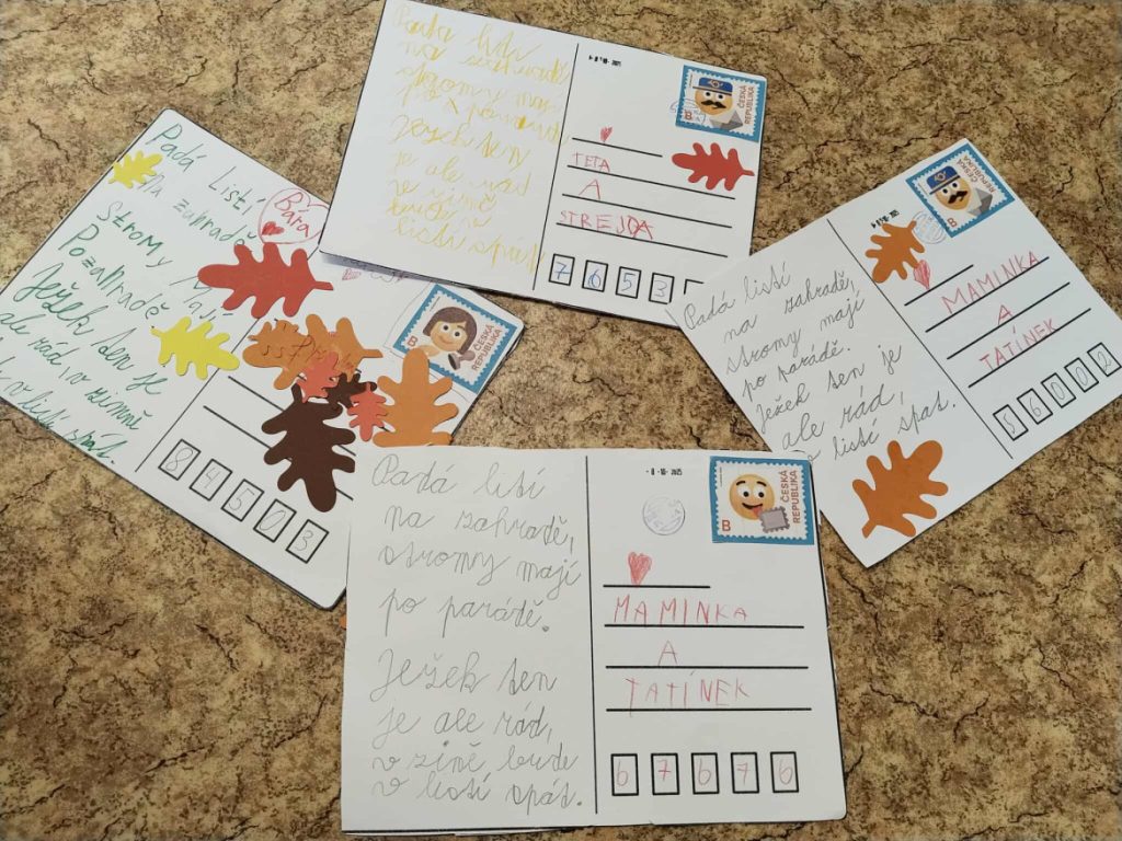 9. října se naše družiny proměnily v poštovní agenturu. Společně jsme nahlédli pod pokličku poštovních služeb, historie pošty – od poštovních holubů 🕊přes koňská spřežení🐎 až k dnešní elektronické komunikaci💻. Žáci ve školním klubu vyrobili potrubní poštu a vyzkoušeli si její výhody. Děti z druhých tříd se vcítily do role designérů a navrhli podzimní sérii poštovních známek. A aby bylo kam známky lepit, potřebujeme pohlednice, o které se postaraly děti z 1. A a 3. A. a podzimní pozdravy se mohly odeslat babičkám, dědečkům, maminkám i tatínkům.