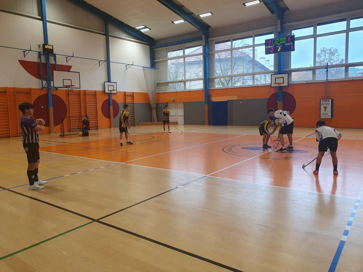 Naši borci z 8. – 9. tříd to na Okrskovém kole ve florbale pořádně rozjeli!