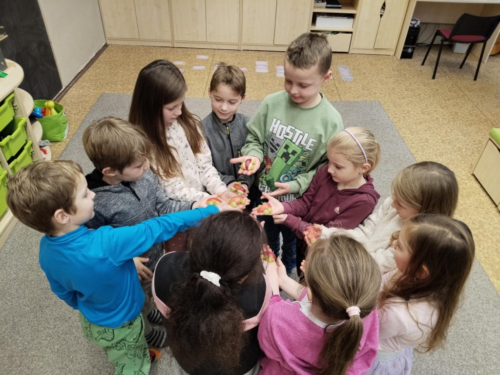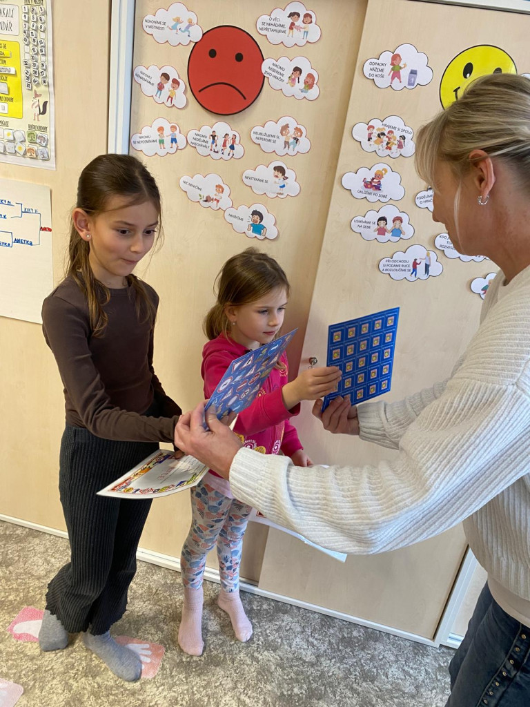 Důležitosti těchto slov právě v tento čas, kdy už je venku brzy tma a dopravě ve městě, jsme se ve školní družině věnovali celý týden. Děti si vybarvily své samolepící reflexní prvky, při hře na zahradě si zopakovaly barvy na semaforu  a co která barva znamená. Vyrobily si dopravní prostředky z ovoce a nakonec se utkaly ve velmi napínavém turnaji v dopravním pexesu. Skvělou pamětí nejvíce vynikly  Anetka Rašková ze 3.B a Maruška Zábržová z 1.B. Výhercům gratulujeme!