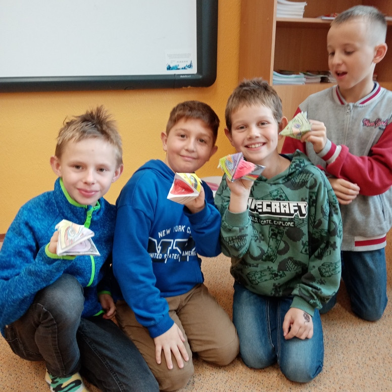 Třetí ročníky se nám tento týden zahalily do podzimních barev. V hodině VV jsme vyráběli dekorativní lampičky na pošmourné podzimní dny. A jako odlehčení v PC jsme si vyrobili prstového maňáska, se kterým jsme si na závěr hodiny zahráli na tzv. „Tichou poštu“. Občas jsme se nestačili divit, kde BYLA závada na přijímači :):):)