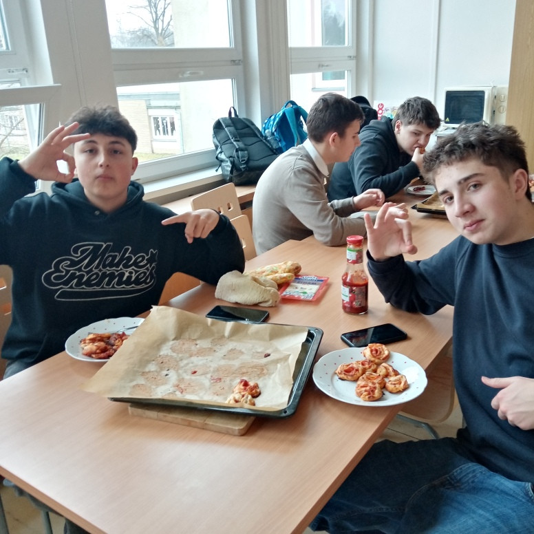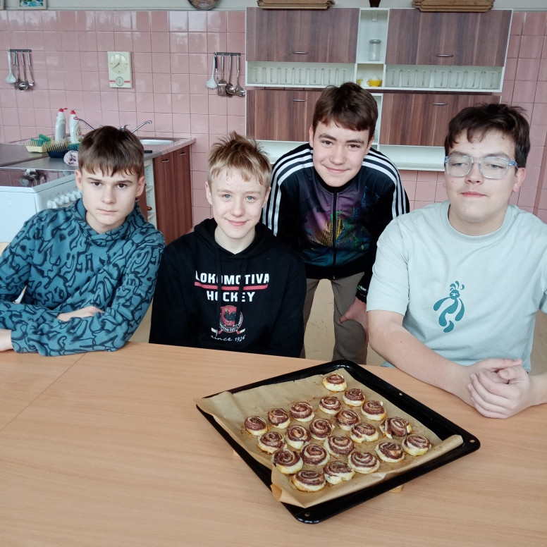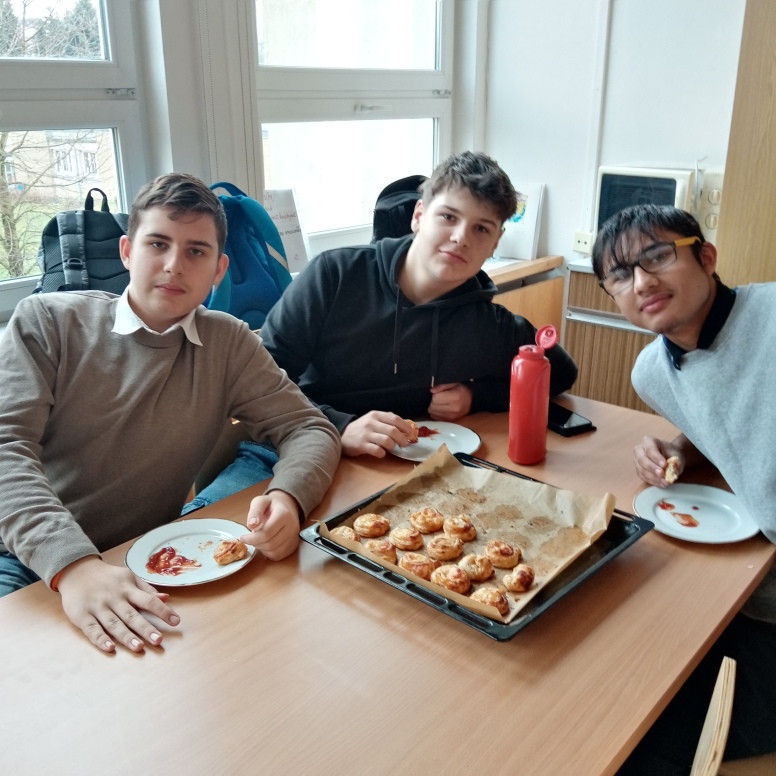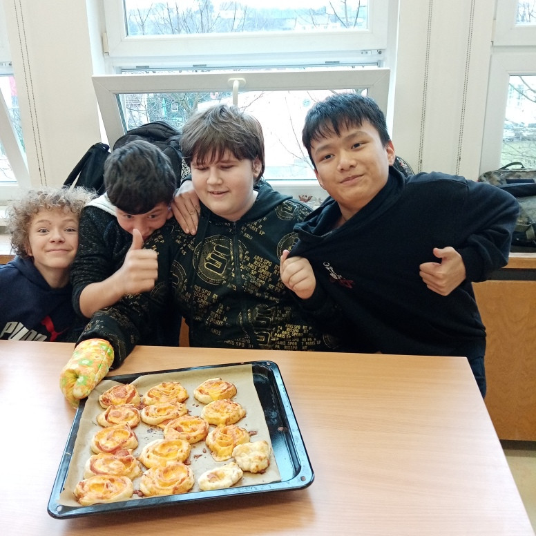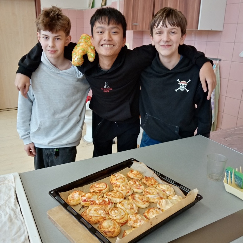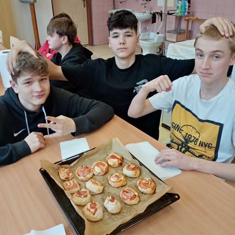 Tento týden se i chlapci 8.ročníků dočkali pečení.Nebylo to sice vánoční cukroví, ale dobře si poradili se šneky z listového těsta. Naslano i nasladko.Chválíme a dáváme palec nahoru :):):)